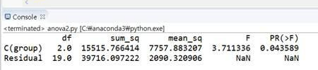 i. 모델생성: model = ols('종속변수컬럼~C(독립변수컬럼1) + C(독립변수컬럼2)', DataFrame).fit()