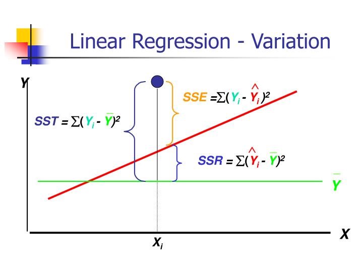 n SST(total sum of squares): 종속변수의 관측 값과 표본의 평균의 차이(편차)를 제곱하여 합한 값