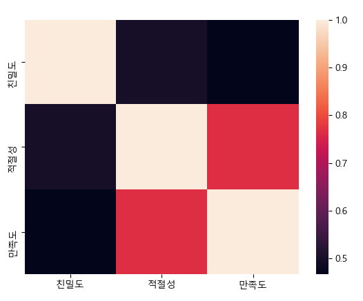 # heatmap: 밀도를 색으로 표현, 색이 진할수록 약한 상관관계