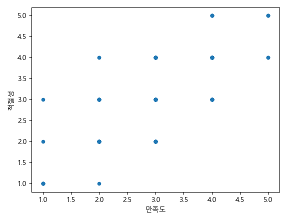 df.plot(kind='scatter', x='만족도', y='적절성')