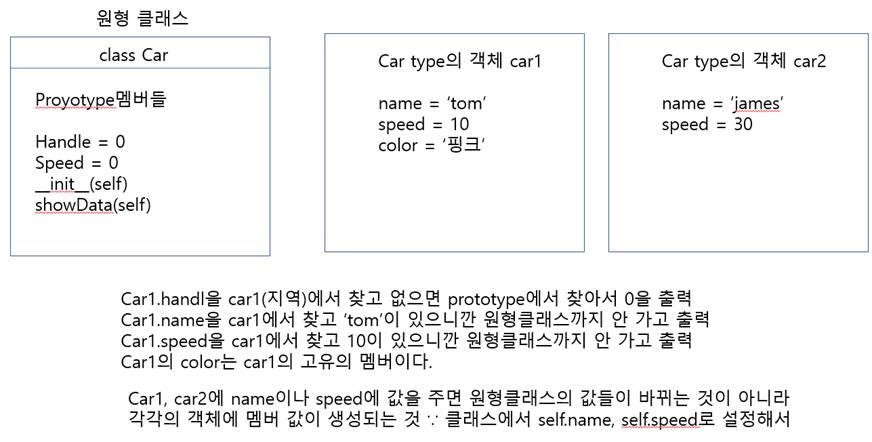 # 원형클래스에는 name에는 없고 각각의 객체들에만 만들어지는 color같이 튜닝하는 것과 같은 느낌