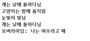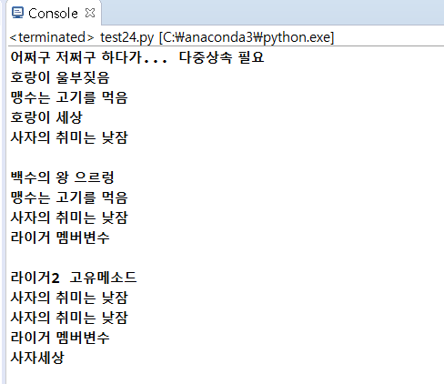 say = '일하는 동물' # 자식과 동일한 멤버변수에 의해 부모의 say가 숨겨짐(은닉화)