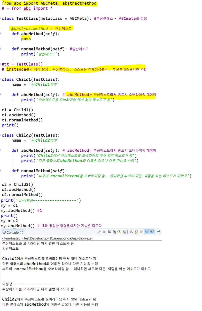 pass #오버라이딩 해주길 기대, 강요는 아님. 자식클래스에서 오버라이딩을 강요하고 싶으면 추상메소드를 이용. 다형성 구사를 위해 오버라이딩 강요