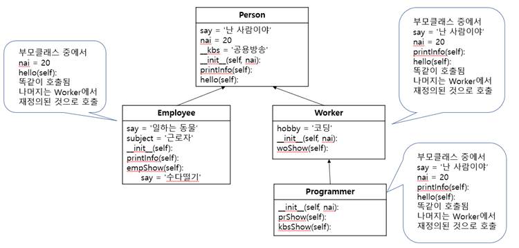 print(self.say) # 현재 class의 say, 없으면 부모class의 say