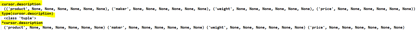 print(type(cursor.description)) # 튜플안에 요소들도 튜플