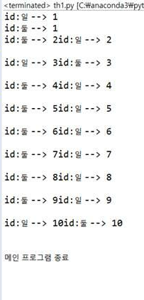 print('\n메인 프로그램 종료') #메인 스레드에 의해 메인모듈이 실행(기본 값)