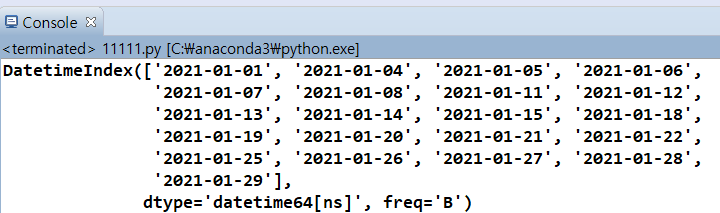 print(pd.date_range('2021-01-01', '2021-01-31', freq='B' ))