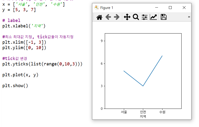 ⑦ plt.xlim(범위): x축 tick을 범위 내에서 자동 지정