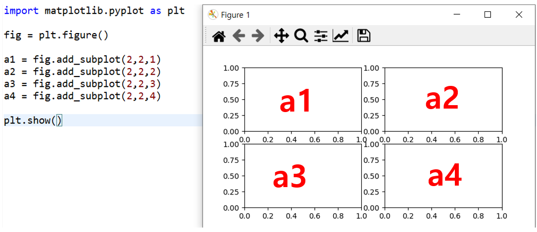 ③ subplots를 변수로 정의해서 사용할 때는 반드시 두 개 변수 명 사용