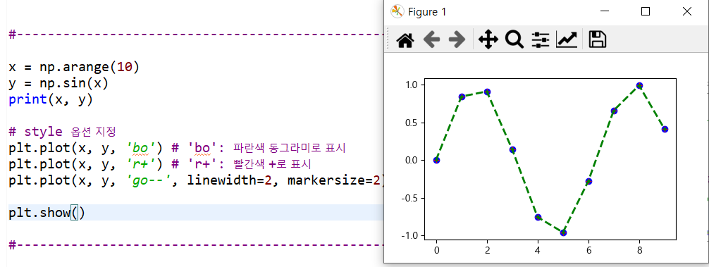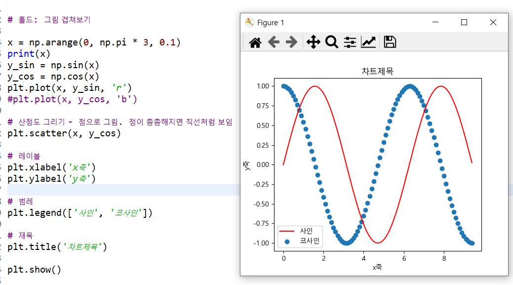 ② 차트를 n개 정의하고 마지막에 show메소드를 한번만 호출하면 하나의 figure에 n개의 차트가 겹쳐 보이게 됨.