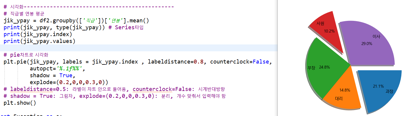 ③ autopct: 부채꼴 안에 표시될 숫자의 형식을 지정