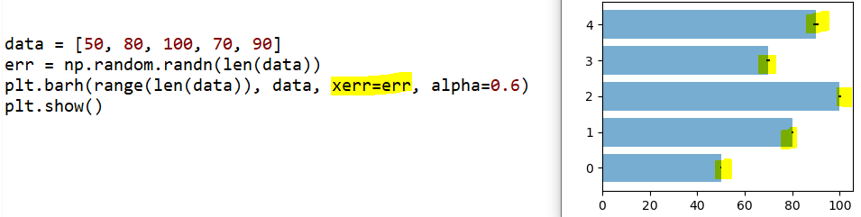 yerr = 3이라고 하면 y값 기준 상, 하로 3씩 총 6만큼 선으로표시