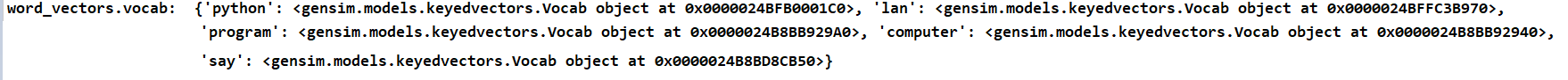 print('word_vectors.vocab: ', word_vectors.vocab) #key, value로 구성된 vocab obj