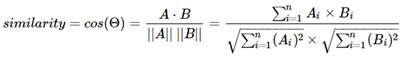 n 두 벡터 A, B에 대해서 코사인 유사도는 식