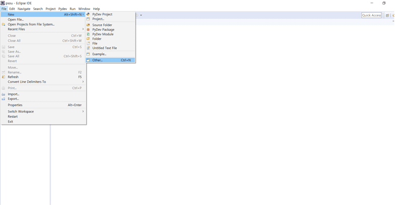 File -> New -> Other… -> PyDev Django Project -> 프로젝트명, Grammar Version, Interpreter 설정 -> Next -> Next -> Next -> Finish