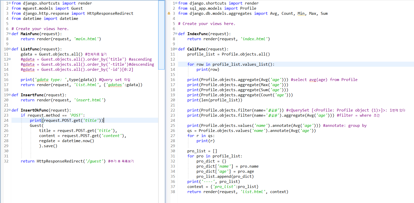 b. from django.db.models.aggregates import Avg, Count, Min, Max, Sum 로딩