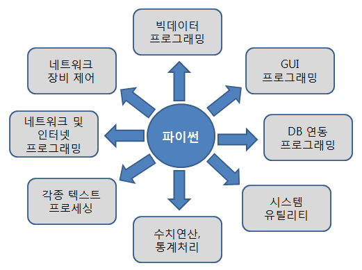 (2) glue language: 플랫폼의 역할, 여러 라이브러리를 붙여서 아래 기능들 가능, 다른 언어들과도 잘 어울림