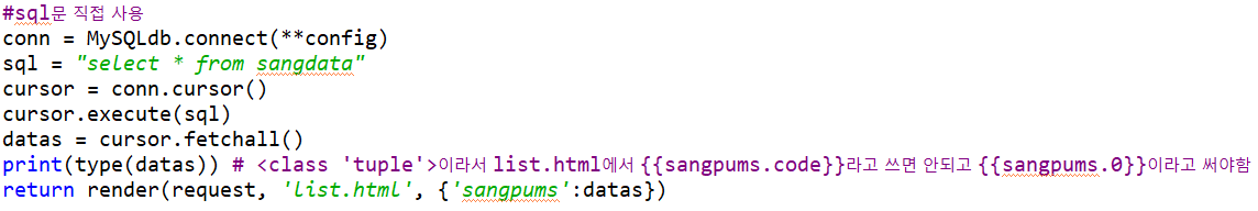 (1) views.py에서 sql문장을 사용한 경우