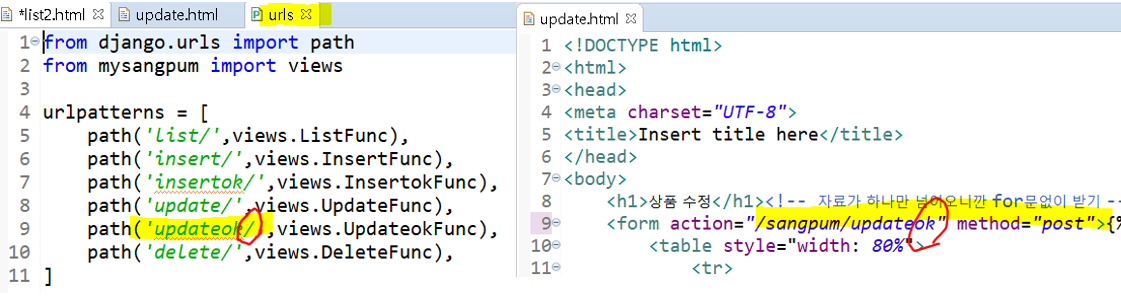 <form action="/sangpum/updateok/" method="post">{% csrf_token %}