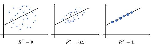 (1) 회귀선에 데이터들이 밀접하게 분포하고 있는지를 나타내는 것
