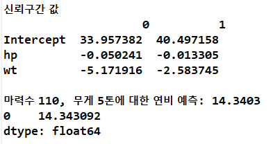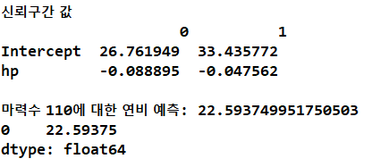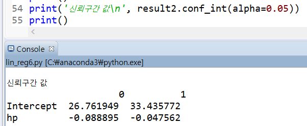 print('신뢰구간 값\n', result2.conf_int(alpha=0.05))
