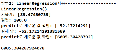 print('예측결과\n', np.polyval([model.slope, model.intercept], newdf))