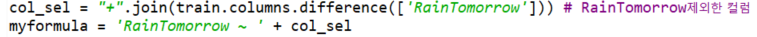'종속변수 ~ ' + "+".join(data.columns.difference([제외할 컬럼명들]))
